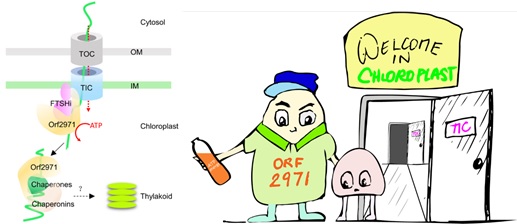 The proposed role of Orf2971 in chloroplast protein translocation (Image by XING Jiale and ZHANG Zhongchun)