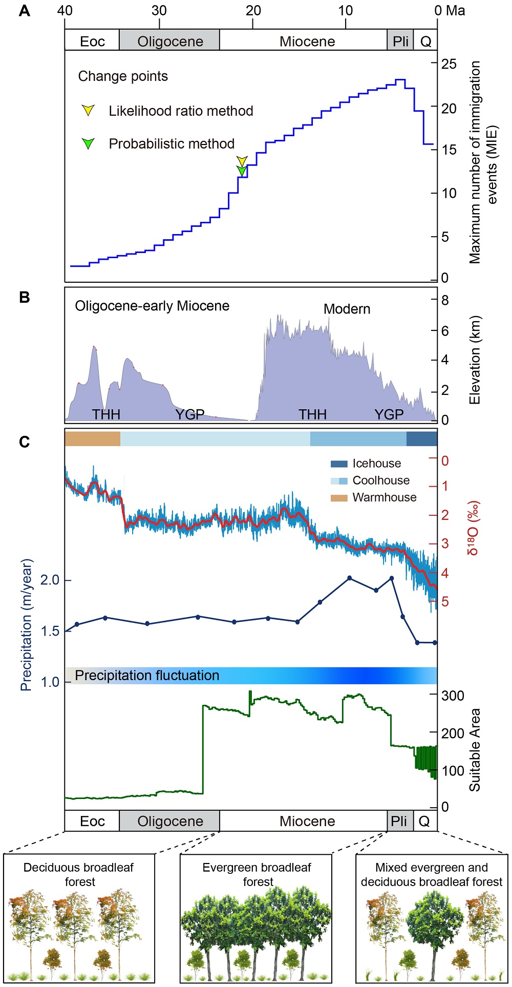 The researchers found that most cave colonization events occurred after the Oligocene-Miocene boundary and that the surrounding forest was a major source for cave biodiversity. Biotic colonization during the Neogene was not a random process, but was subject to periods of acceleration and decrease. By modeling the variation of suitable area of East Asian subtropical evergreen broad-leaf forests over time and analyzing paleoclimate data from 19 fossil sites, they further proposed that biotic colonization of subtropical East Asian caves during the Neogene was in conjunction with large-scale, seasonal climatic changes and evolution of local forests.