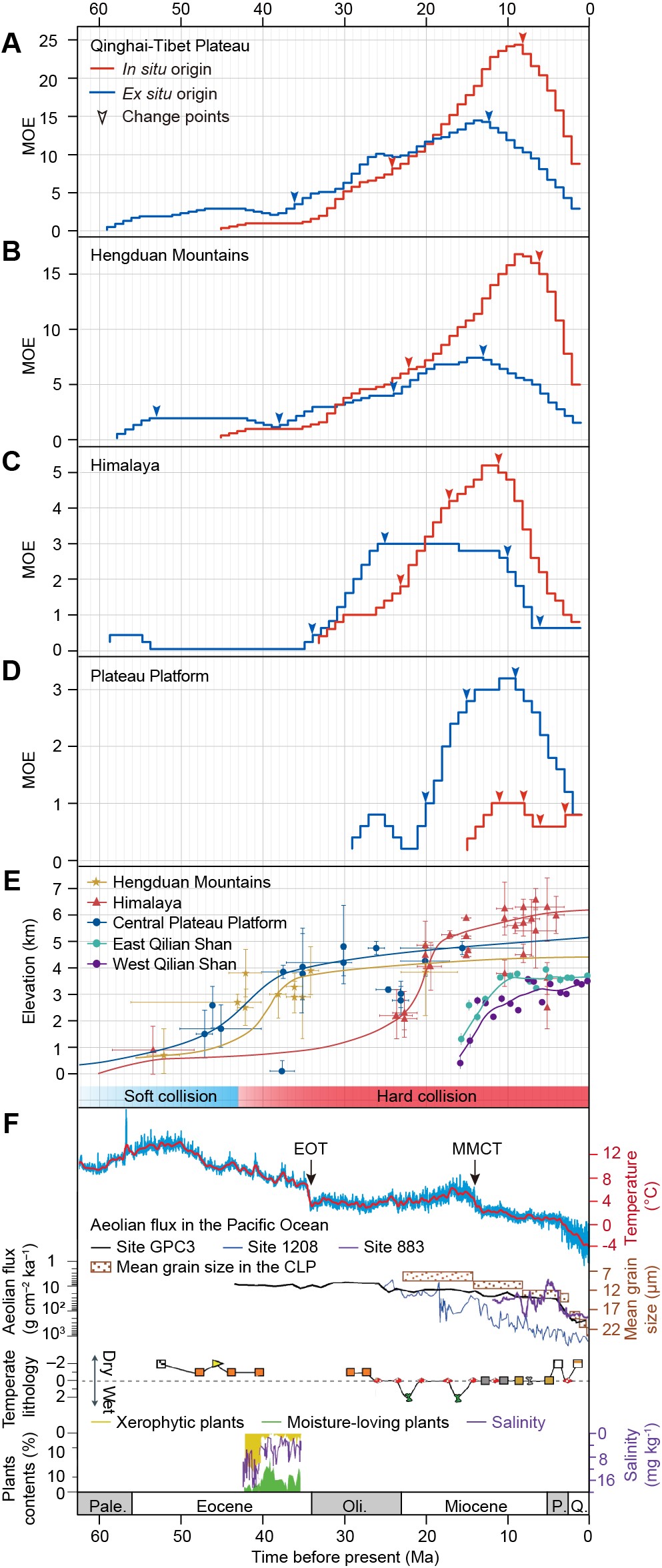 Occurrence dynamics of the recognized endemic genera of land plants from the Qinghai-Tibet Plateau in relation to Cenozoic geoclimatic changes (Image by IBCAS)