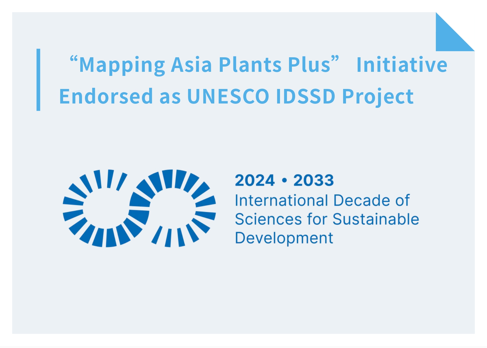 Recently, the "Mapping Asia Plants Plus" (MAP+) initiative, led by the Biodiversity Committee, Chinese Academy of Sciences (BC-CAS), has been selected among the first projects of the United Nations' International Decade of Sciences for Sustainable Development (IDSSD) (2024-2033) .