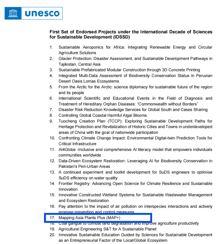 Mapping Asia Plants Plus Initiative Selected as a UNESCO IDSSD First Set of Endorsed Projects