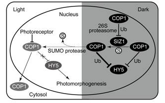Figure 2:Proposed model of how SIZ1 and COP1 regulate photomorphogenesis