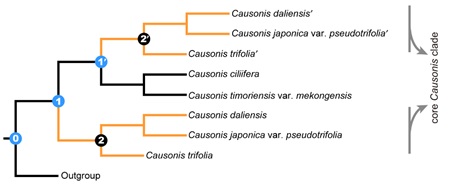 Fig. 2 The allopolyploid origin of the core Causonis clade.